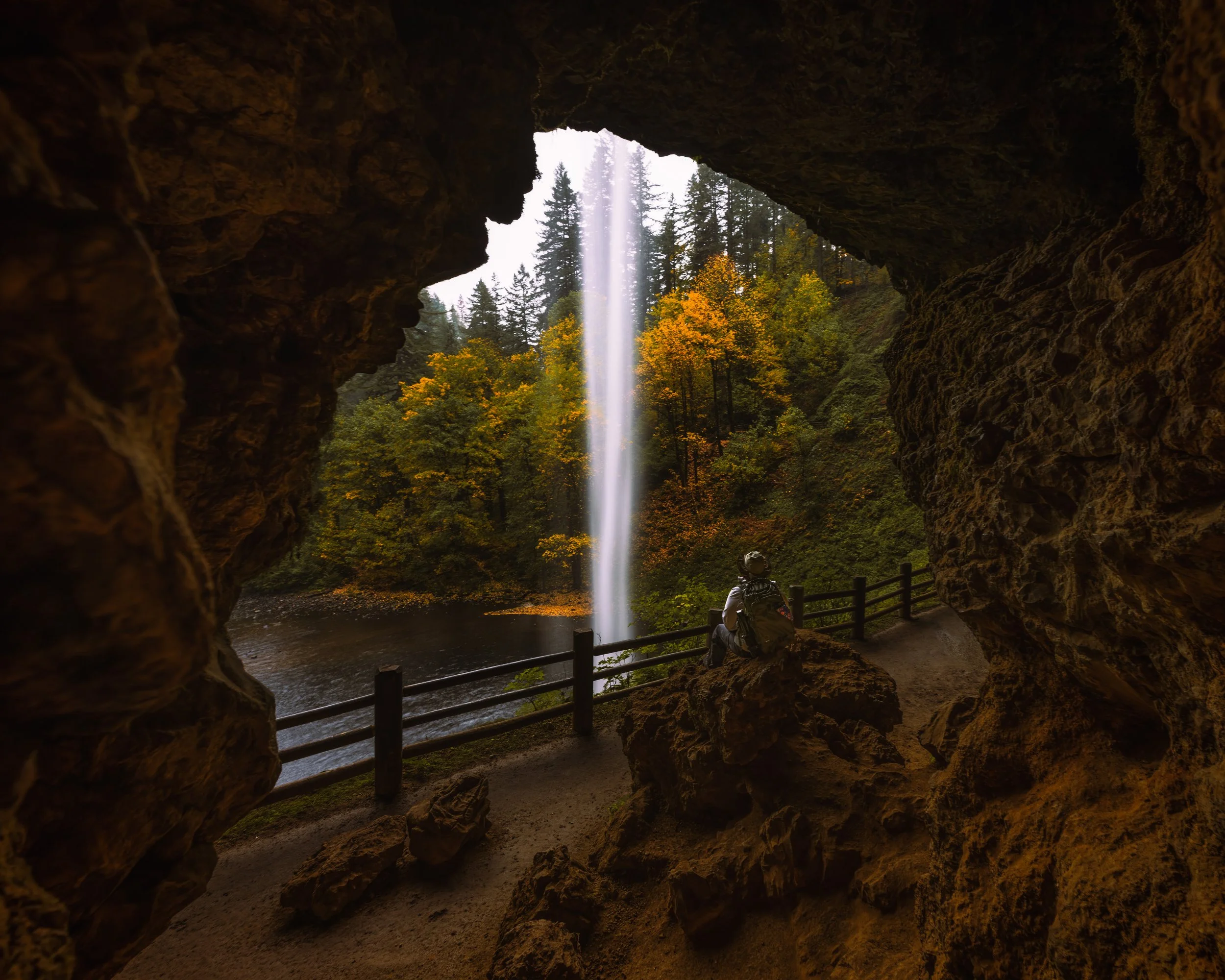 Just chilling behind a waterfall at Silver Falls State Park.