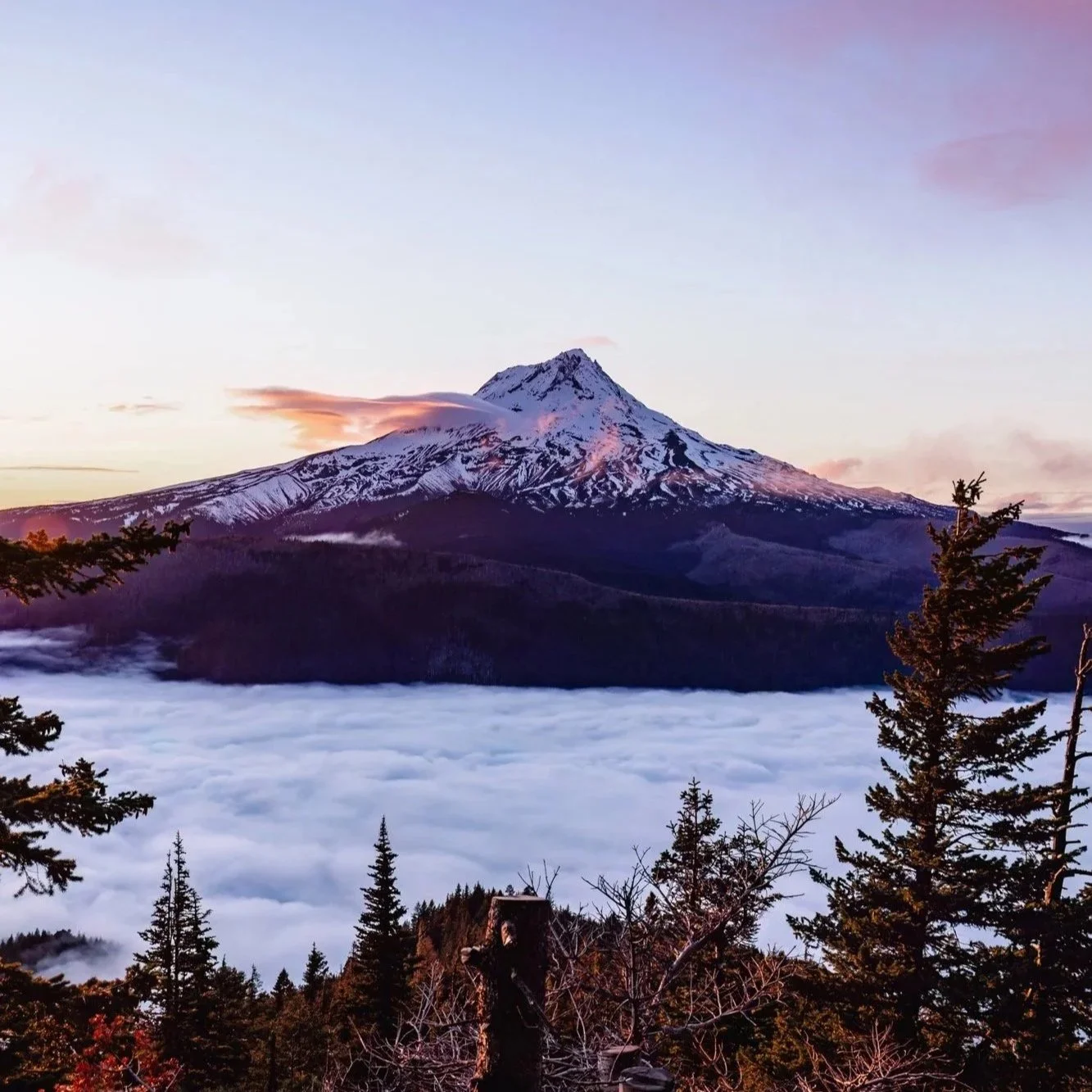 Mt. Hood with low lying clouds.